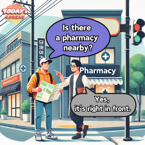 - Is there a pharmacy nearby : ( geun-cheo-e yak-guk it-seo-yo? )
